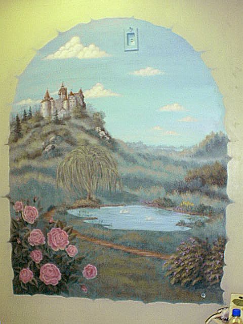 from all over the world. The Old World /Garden Theme of the mural enhances and compliments the unusual gifts sold there.