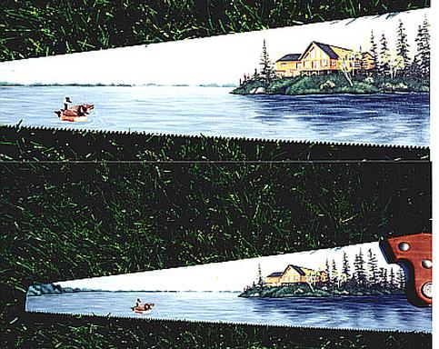 47" long 2-man saw with Alaskian Scene.